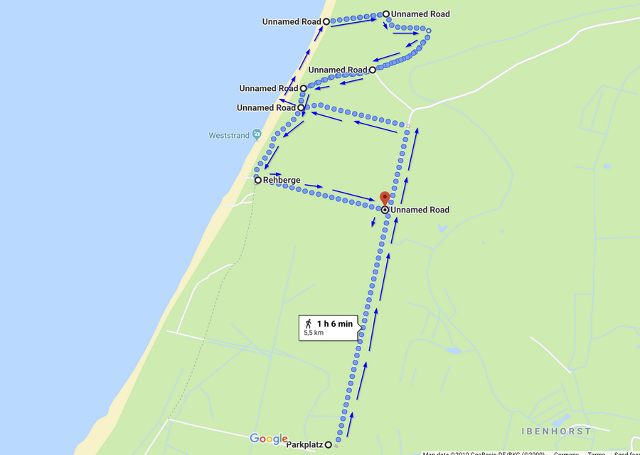 1.Gehroute zum Weststrand vom Parkplatz Drei Eichen